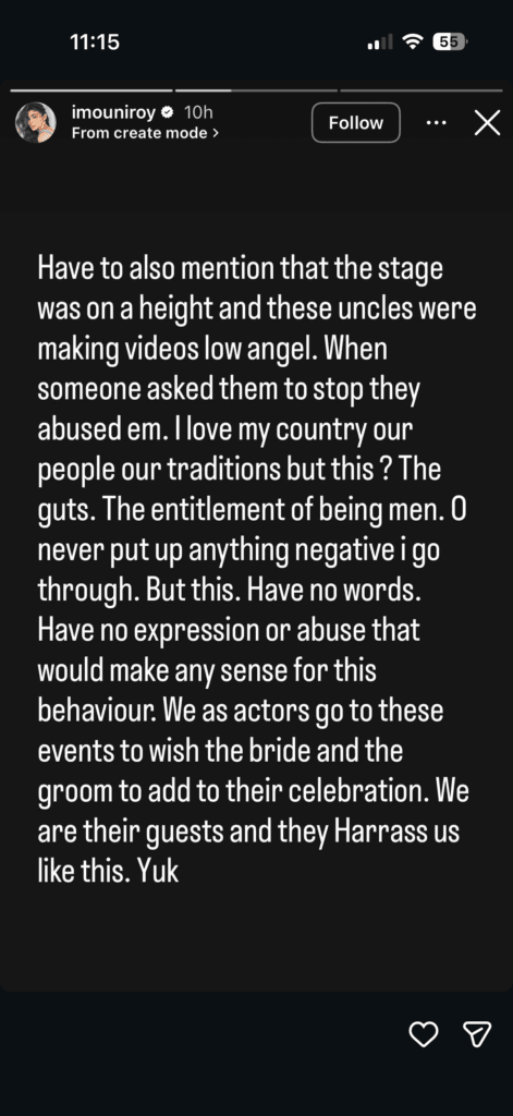 She detailed how several men, under the guise of clicking pictures, repeatedly ignored personal space. “As the event started and I walked towards the stage, uncles and family members (all men) put their hands on my waist to click pictures,” she added. Despite her immediate objections and requests for them to remove their hands, the actor noted that the guests seemed unfazed and even offended by her setting boundaries.